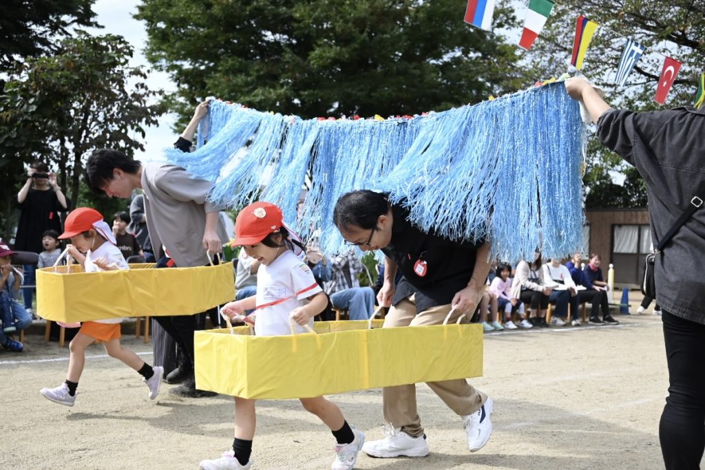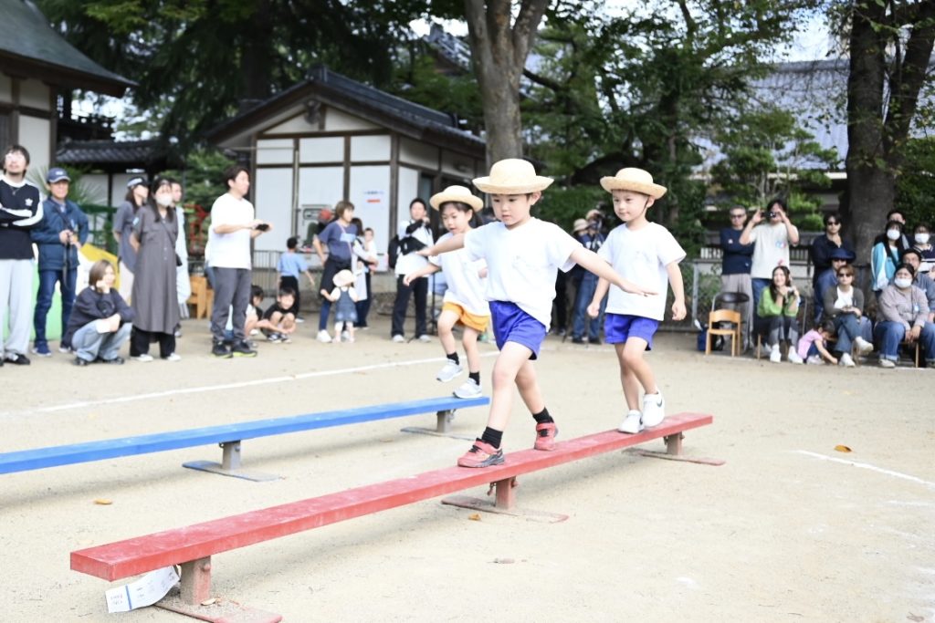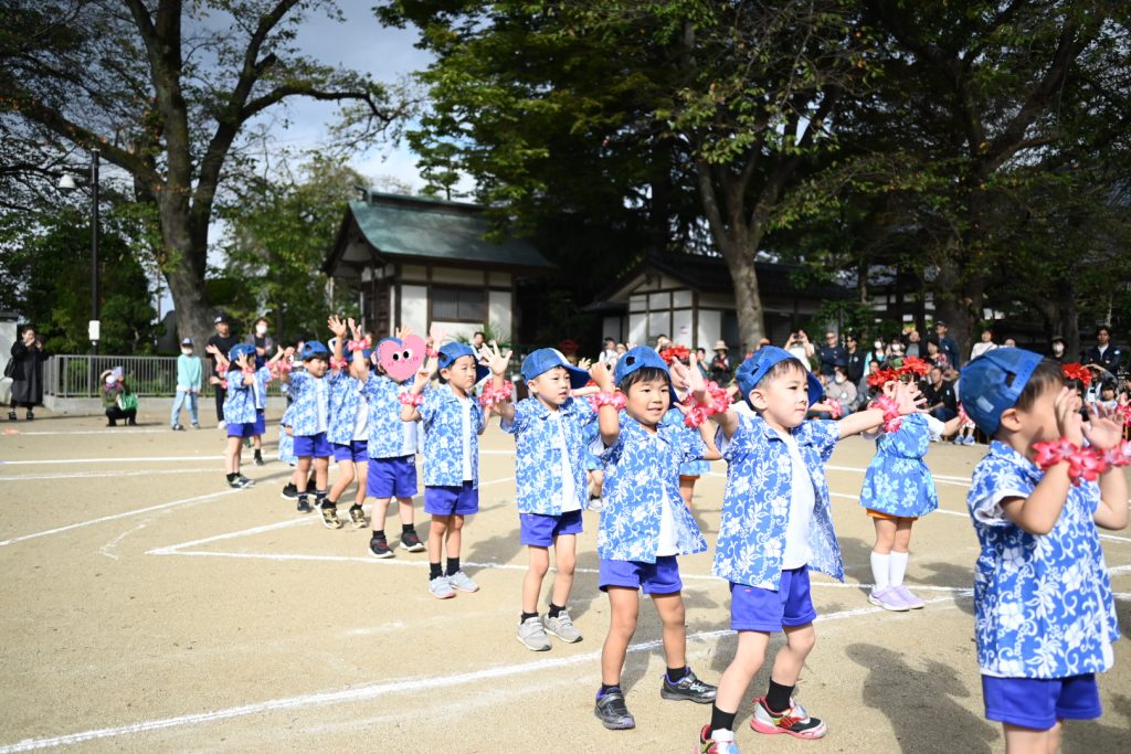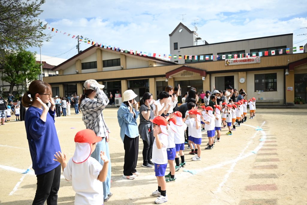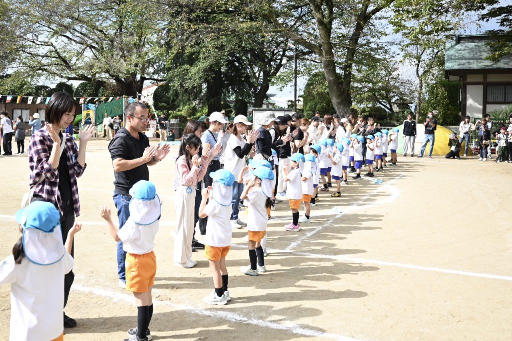 子どもたちはおうちの人を前に、にこにこ元気に頑張りました!