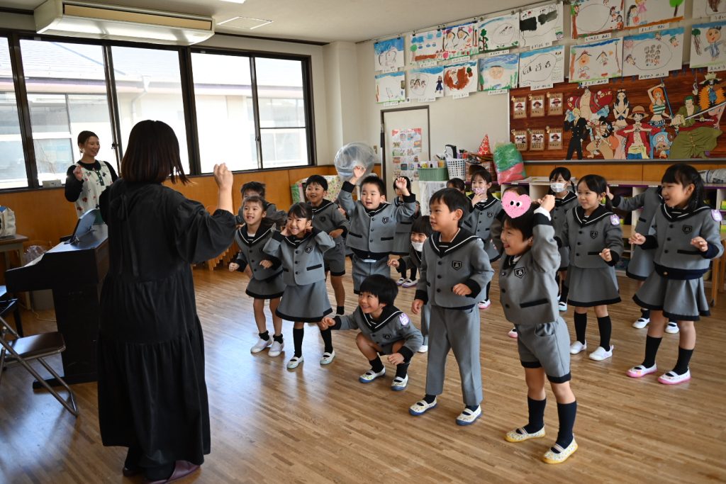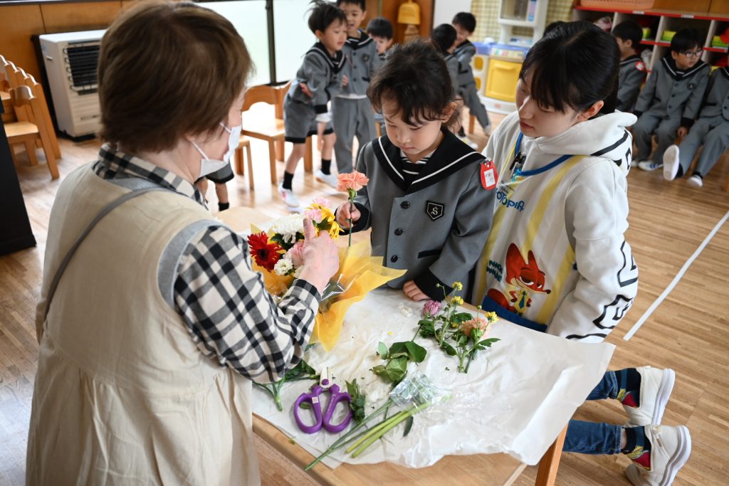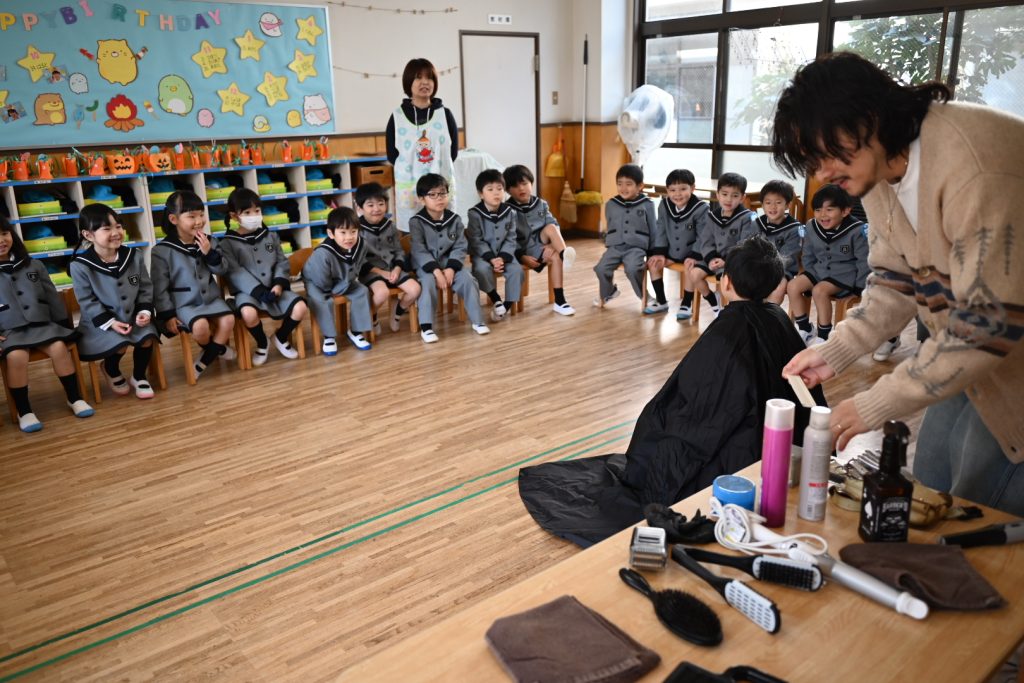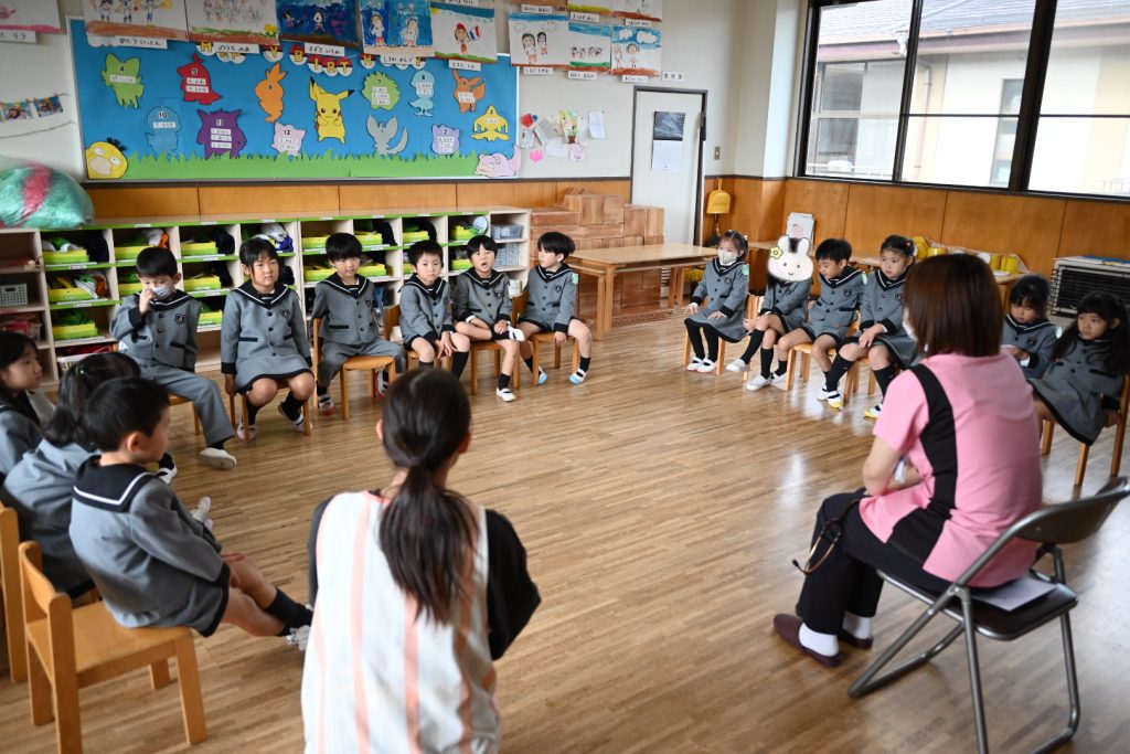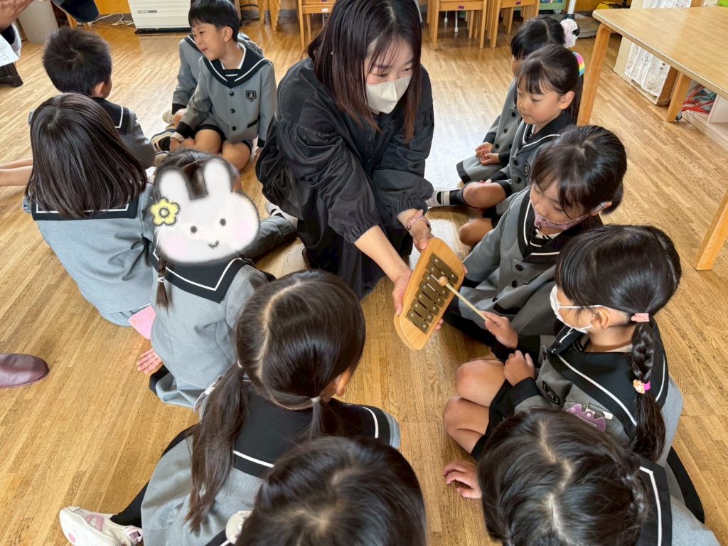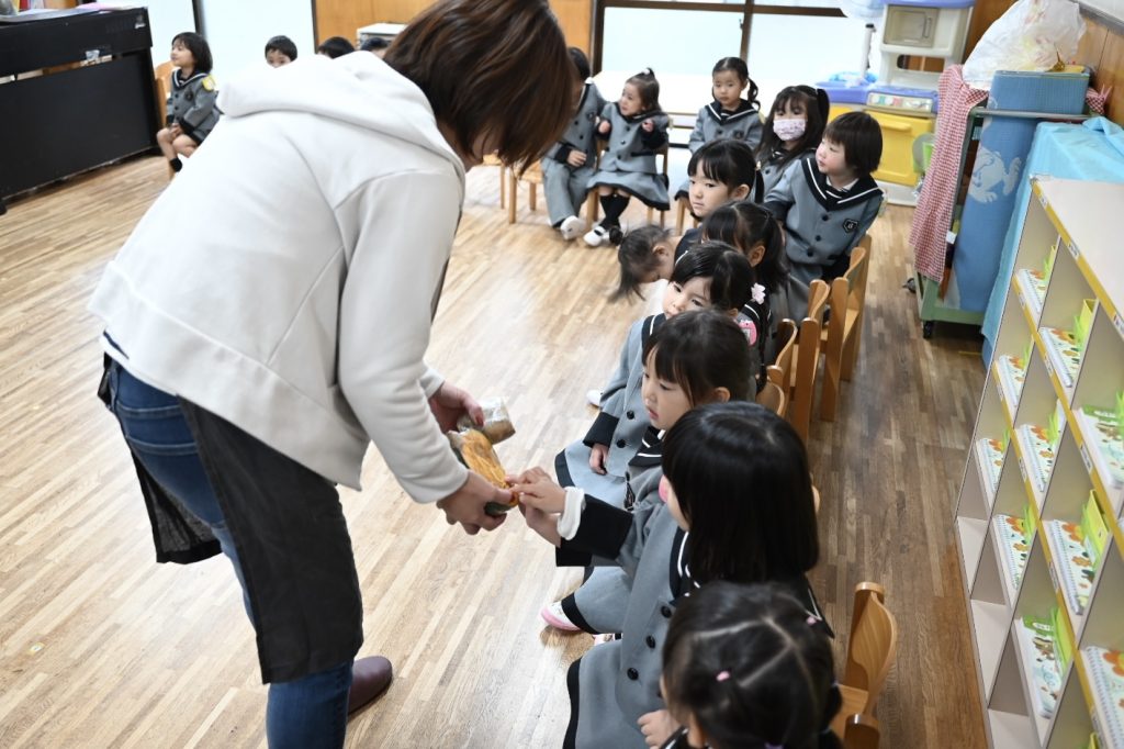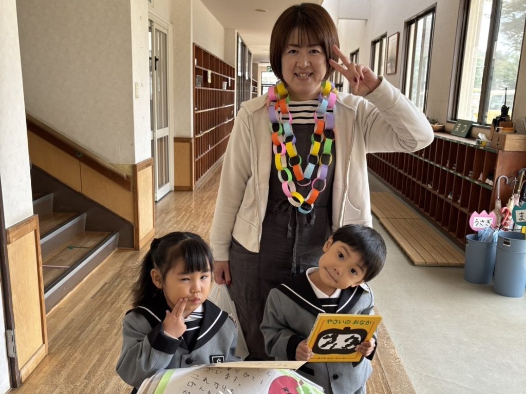 勤労感謝の日の集い 2025 10/29 10月29日(水)は勤労感謝の日の集いでした。 ぱんだ組・うさぎ組には八百屋さん、すみれ組には美容師さん、れんげ組にはお花屋さん、まつ組にはおまわりさん、たけ組には看護師さん、ふじ組にはピアノの先生を招待しました。 それぞれのクラスでお仕事のお話を聞いたり、道具を見せてもらいながらみんなで楽しく過ごしました! 未分類 お誕生会(10月生まれ)