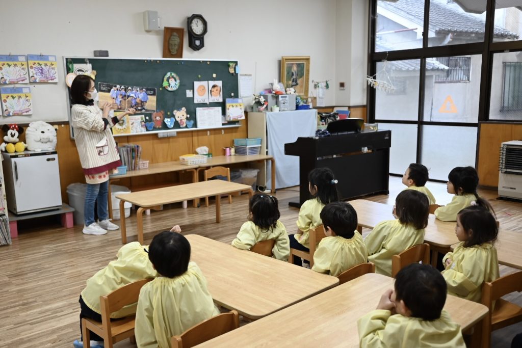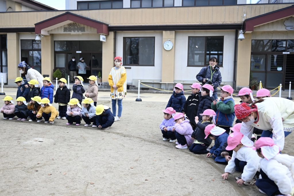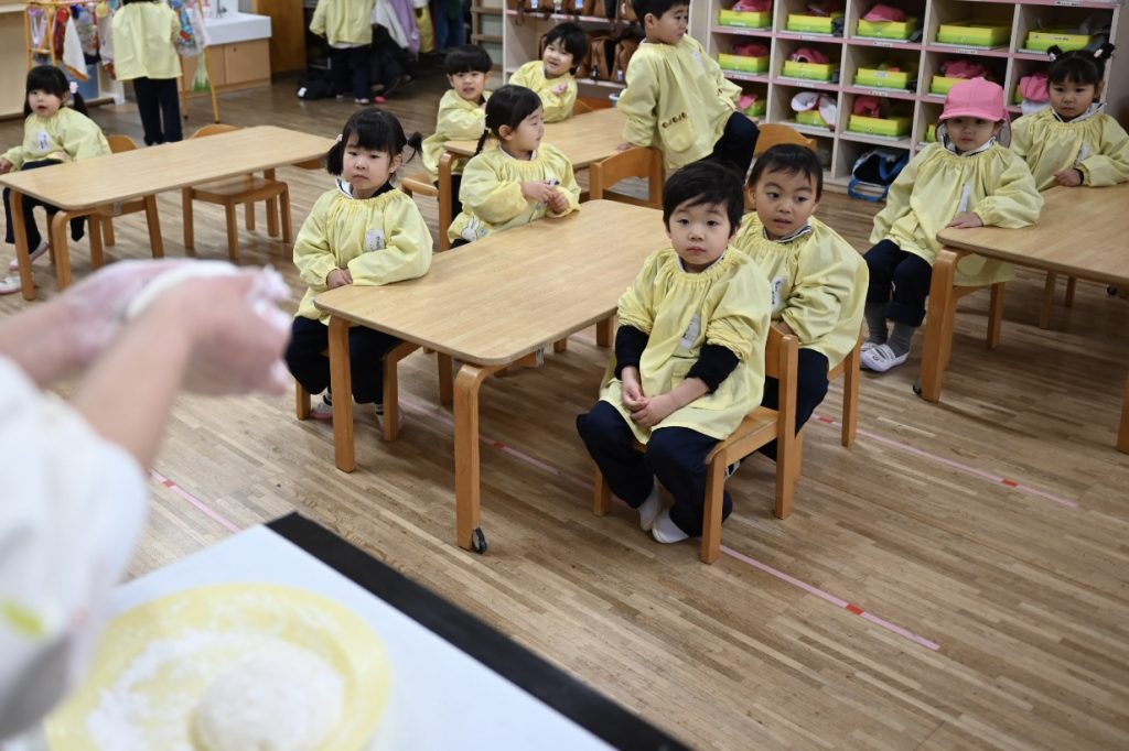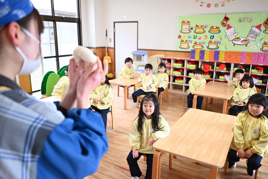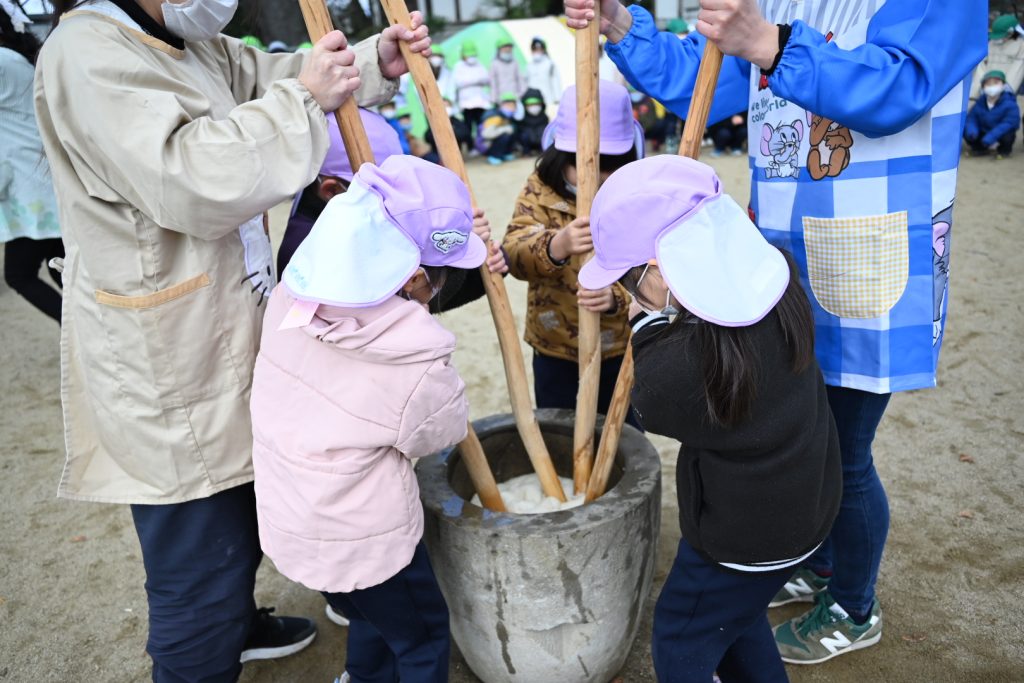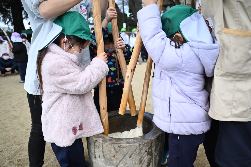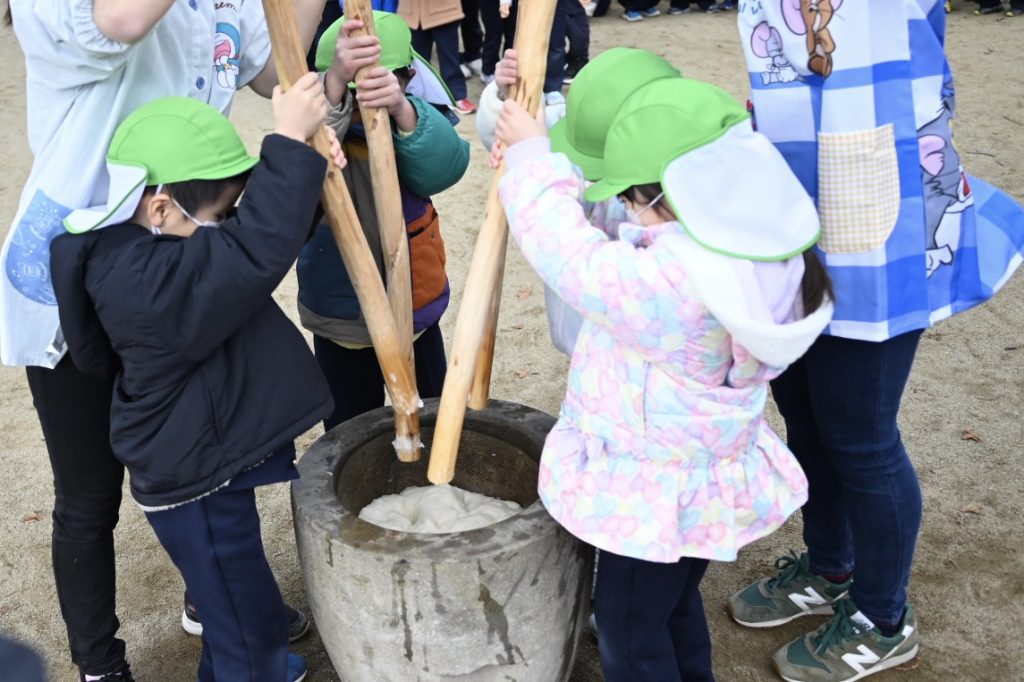 もちつき 2025 12/23 12月18日(木)にもちつきを行いました。 みんなで園庭に出て、バスのおじさんや年長組(5歳児)のお友だちがおもちをつきました。 教室では、担任の先生が鏡餅を作ったり、給食の時間におもちをおいしくいただきました! 新着情報 お誕生会(12月生まれ) 2学期終業式