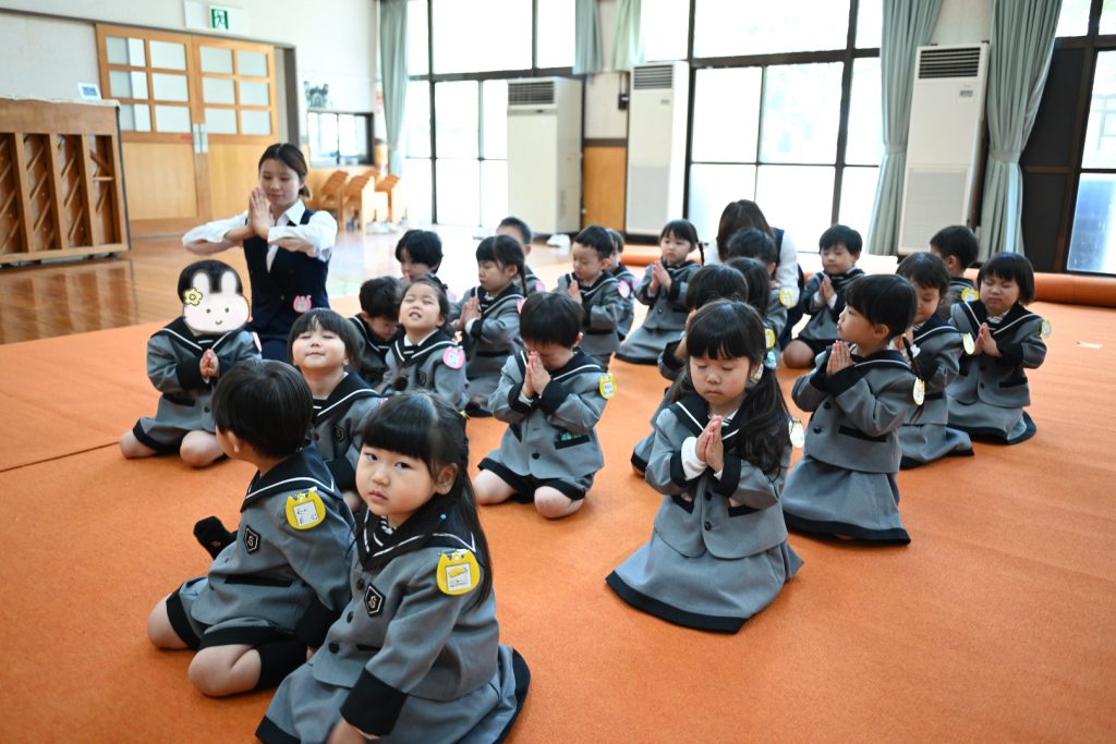 礼拝日 2026 4/24 4月22日(水)は、年中組(4歳児)・年長組(5歳児)の礼拝日、23日(木)は、年少組(3歳児)の礼拝日でした。 じょうずにお参りすることができました。 新着情報 年長さん(5歳児)からのプレゼント お誕生会(4月生まれ)